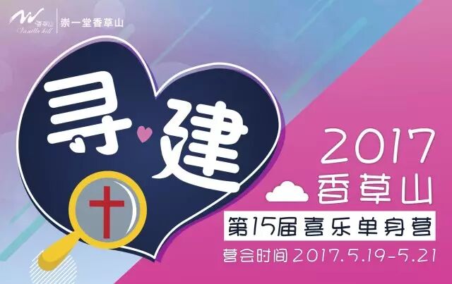 崇一堂2017年香草山第15届喜乐单身营 崇一堂2017年香草山第15届喜乐单身营 “寻建” 营会时间:2017年5月19日-5月21日 报名条件 1.年龄范围:1987-1995年生 2.无婚史,尚无恋爱及寻求对象 3.已受洗或即将受洗,稳定参加聚会 4.救恩清楚 5.本教会服侍人员优先 6.有稳定小组聚会者优先 报名时间 4月23日(周日)11:30-13:00 4月26日(周三)19:00-21:00 名额有限,报满即止! 报名地点 综合楼2楼长老办公室